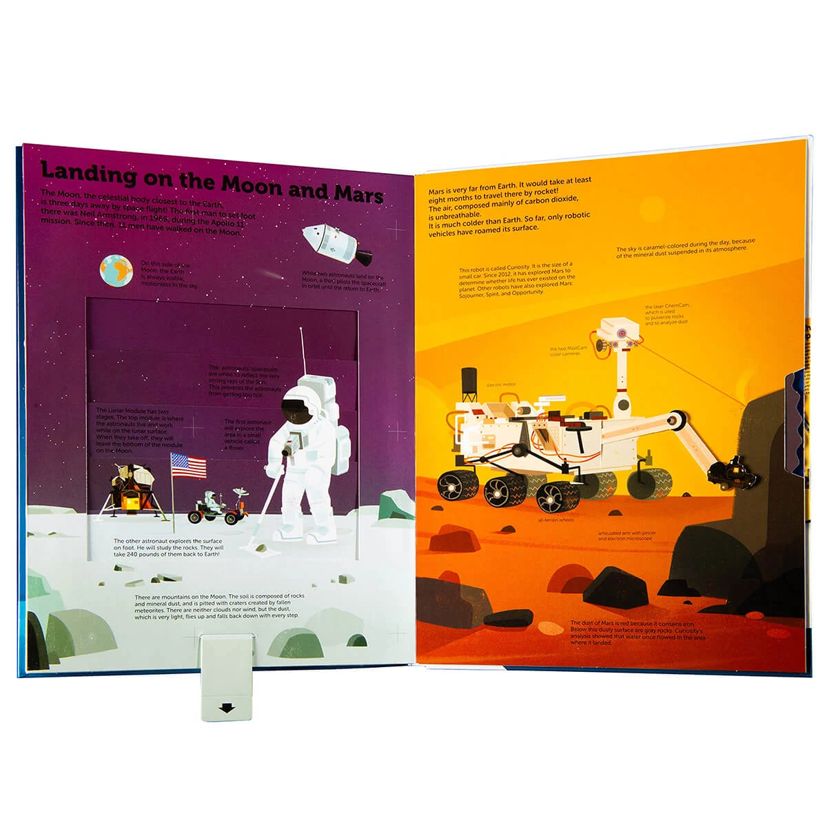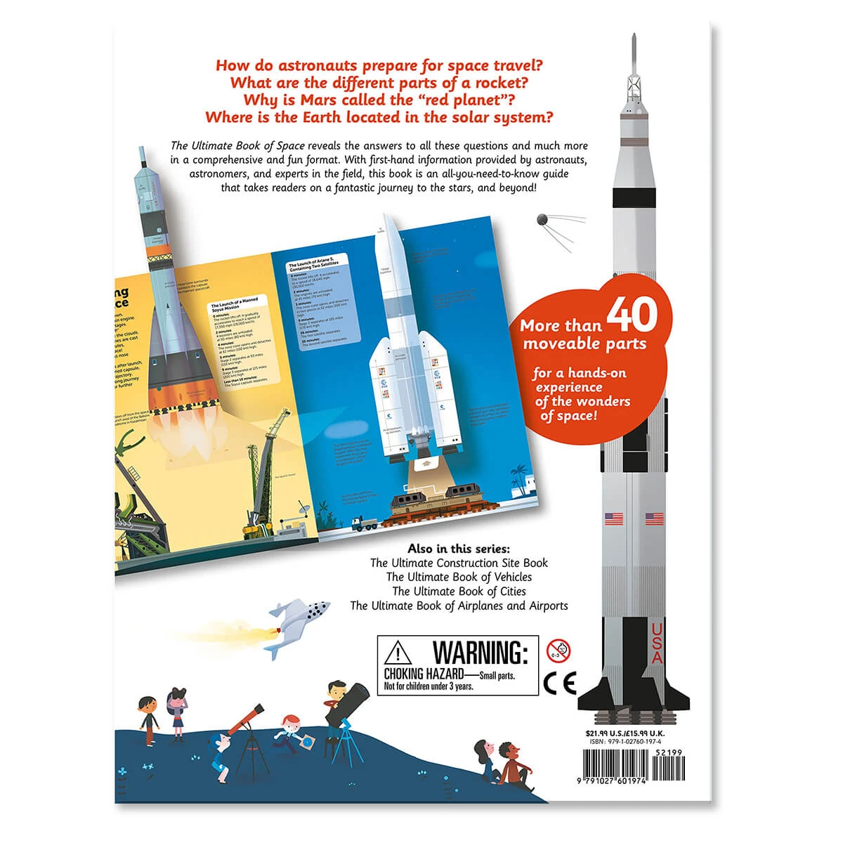 An oversized fact- and action-packed look at the amazing universe of outer space. Bursting with 60 flaps, pop-ups, pull tabs and movable parts, The Ultimate Book of Space provides a richly illustrated, hands-on exploration of the solar system, the Earth’s place in our galaxy, as well as space travel, and much more! Sure to encourage curious young readers to venture deeper into space, this is a must-have volume in the library of any budding scientist.