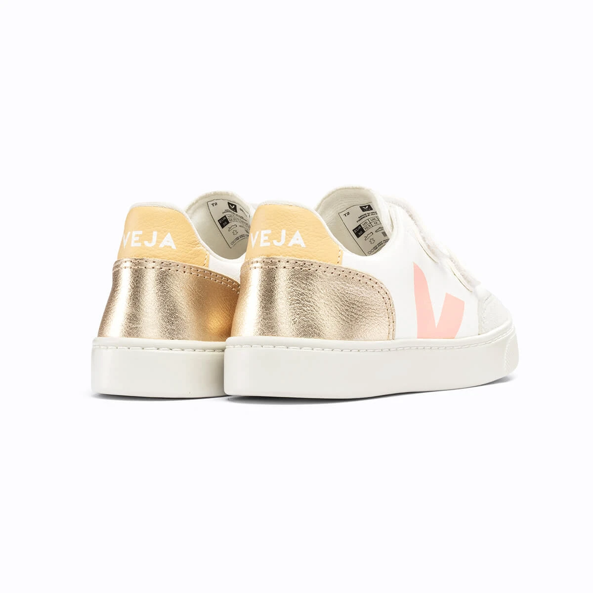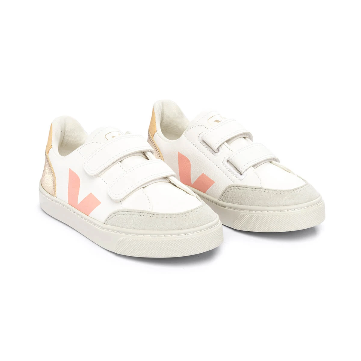 V-12 velcro leather trainers by Veja. The V-12 model is made out of ecological and sustainable materials including chrome free upper, leather and vegan suede.  33% organic cotton & 67% recycled polyester jersey lining with wild rubber from the Amazonian forest (25%) and other synthetic materials.