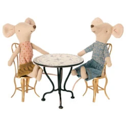Vintage tea table in Anthracite (micro) by Maileg. It’s tea time! Afternoon tea has never been so cute. This metal table has a beautiful floral pattern and looks like it came straight from a Danish café. Fits micro bunnies, rabbits and the brother and sister mice family.  Matching chairs sold separately.