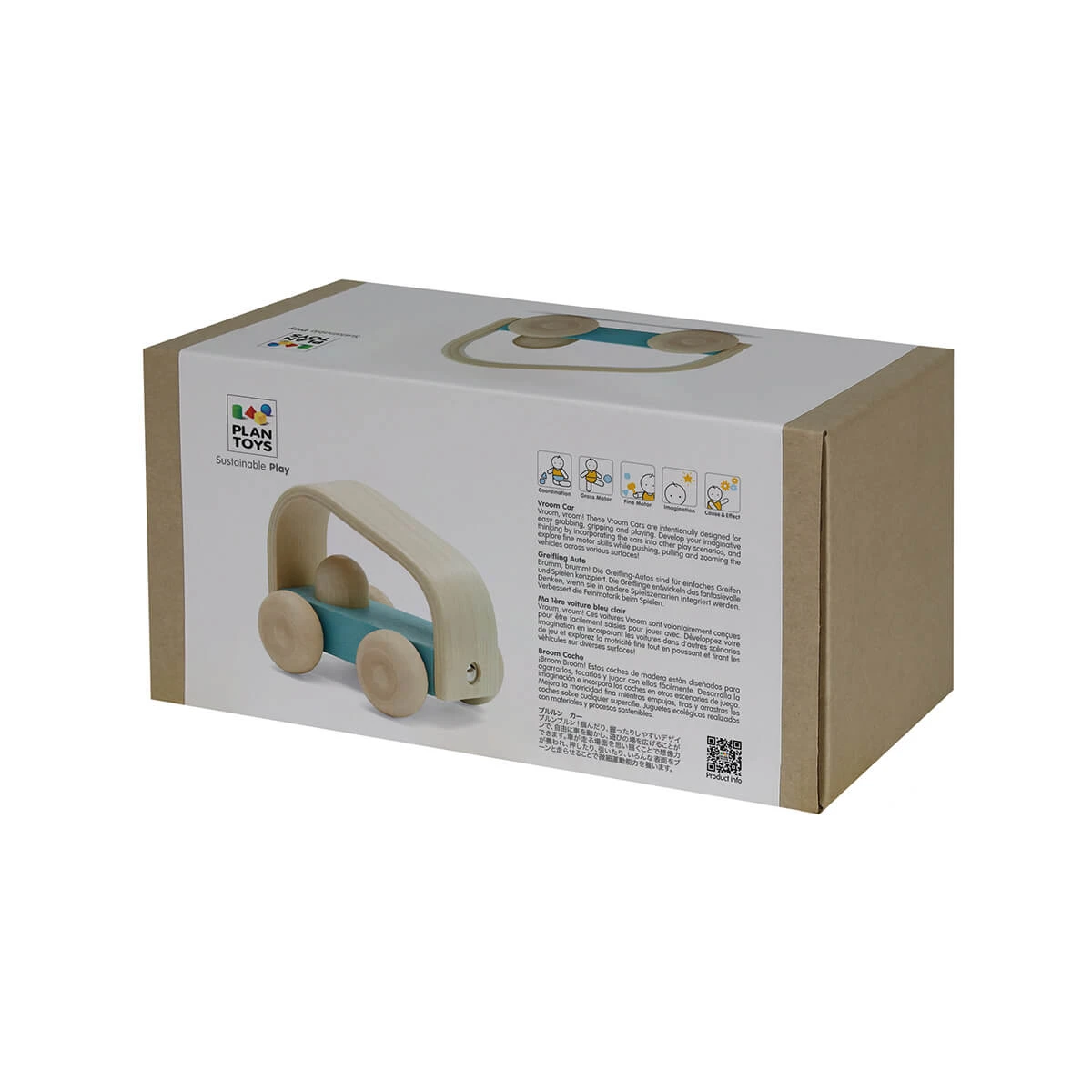 Vroom Car by PlanToys. Vroom, vroom! These Vroom Cars are intentionally designed for easy grabbing, gripping and playing. Develop your imaginative thinking by incorporating the cars into other play scenarios, and explore fine motor skills while pushing, pulling and zooming the vehicles across various surfaces!