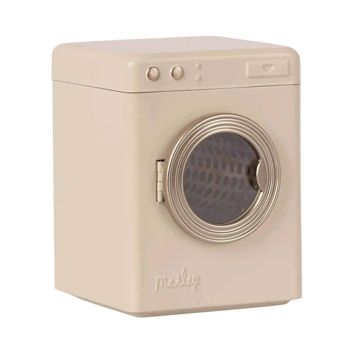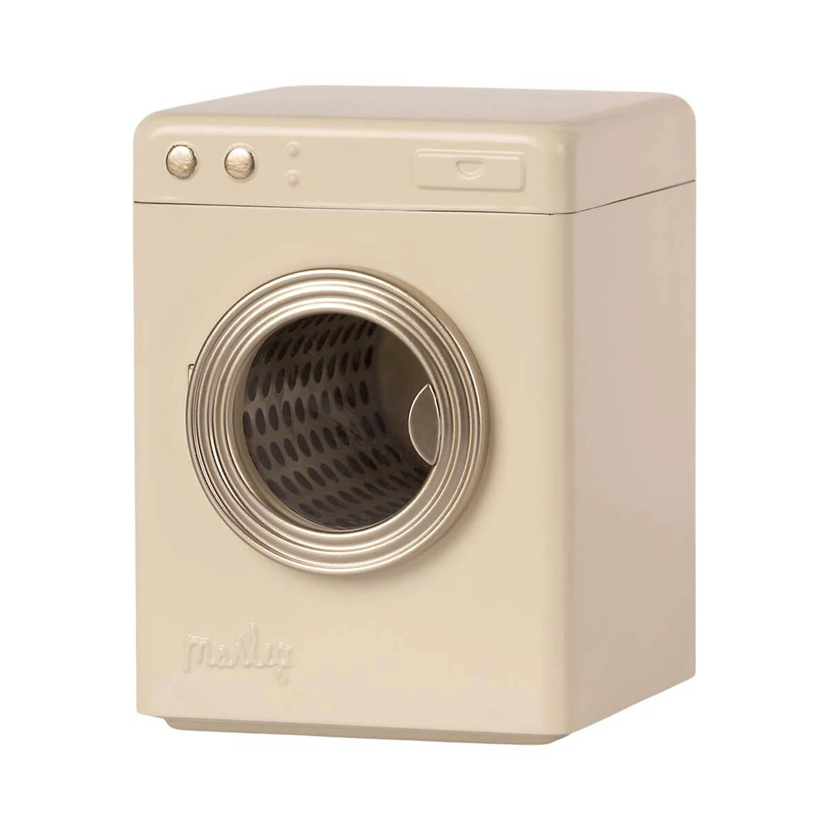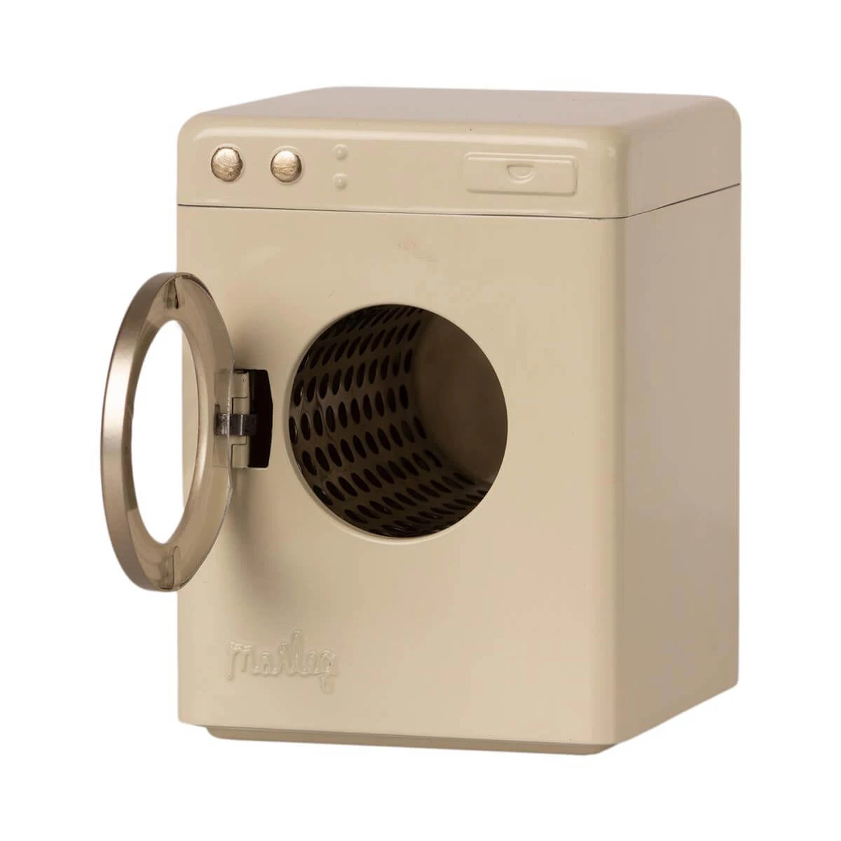 Washing machine by Maileg. Every busy household needs a helping hand for the laundry – a washing machine is the perfect solution. This washine machine is made in metal and painted in off-white colour and has many details that make it indispensable in the storytelling.
