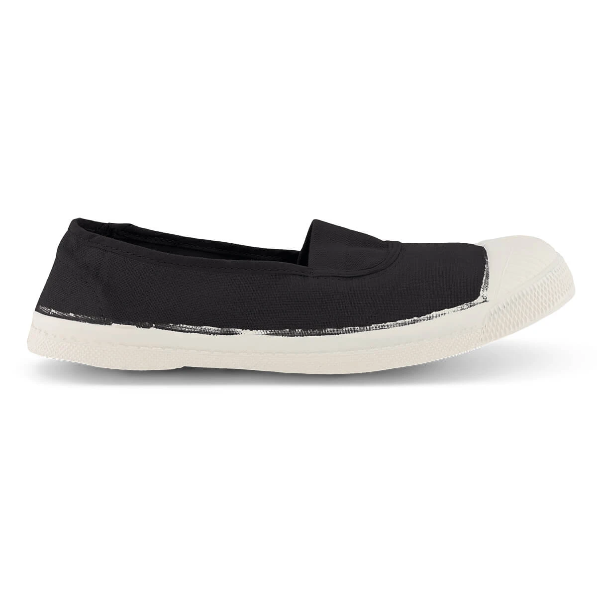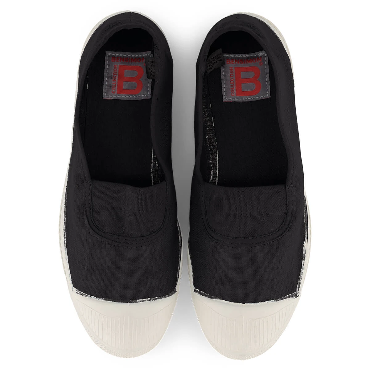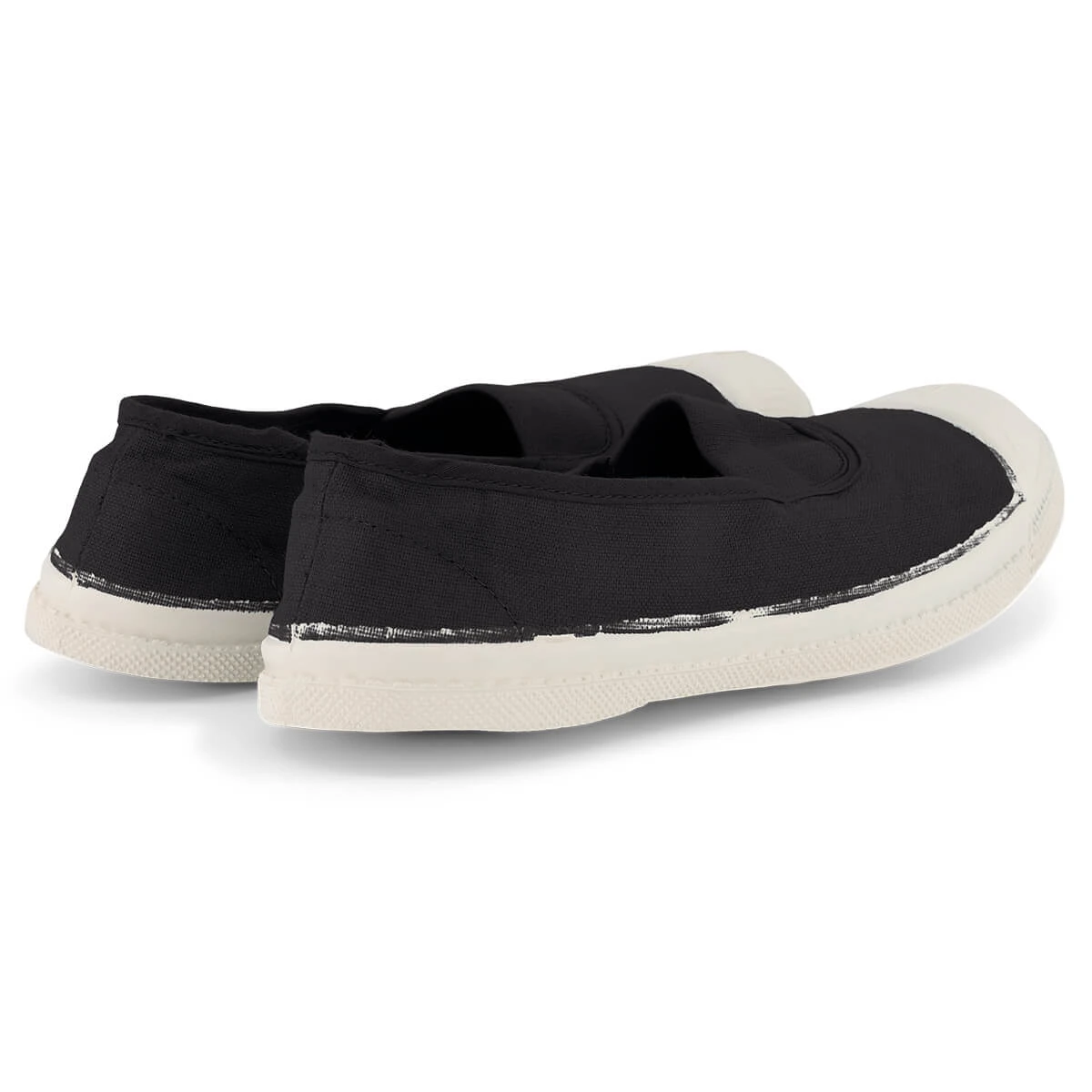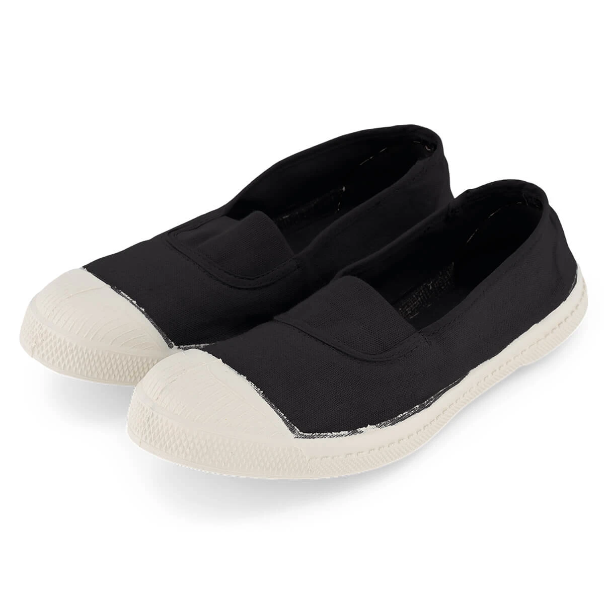 Women’s elastic tennis shoe by Bensimon.  Simple slip-on elasticated front version of the Bensimon tennis shoe. This slip-on style is easy to put on and quick to take off. Thin and lightweight made from rubber and natural cotton. Every shoe is hand-dyed in Bensimon’s workshops in France, meaning every pair has its own variations and is completely unique.