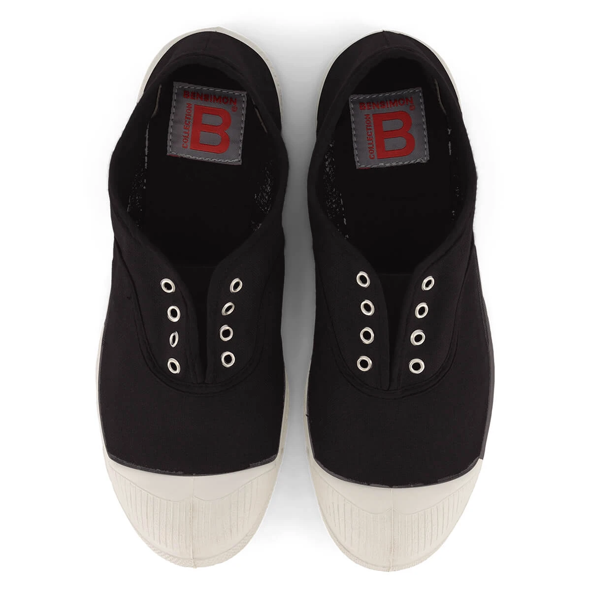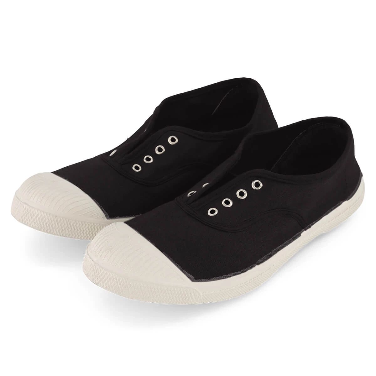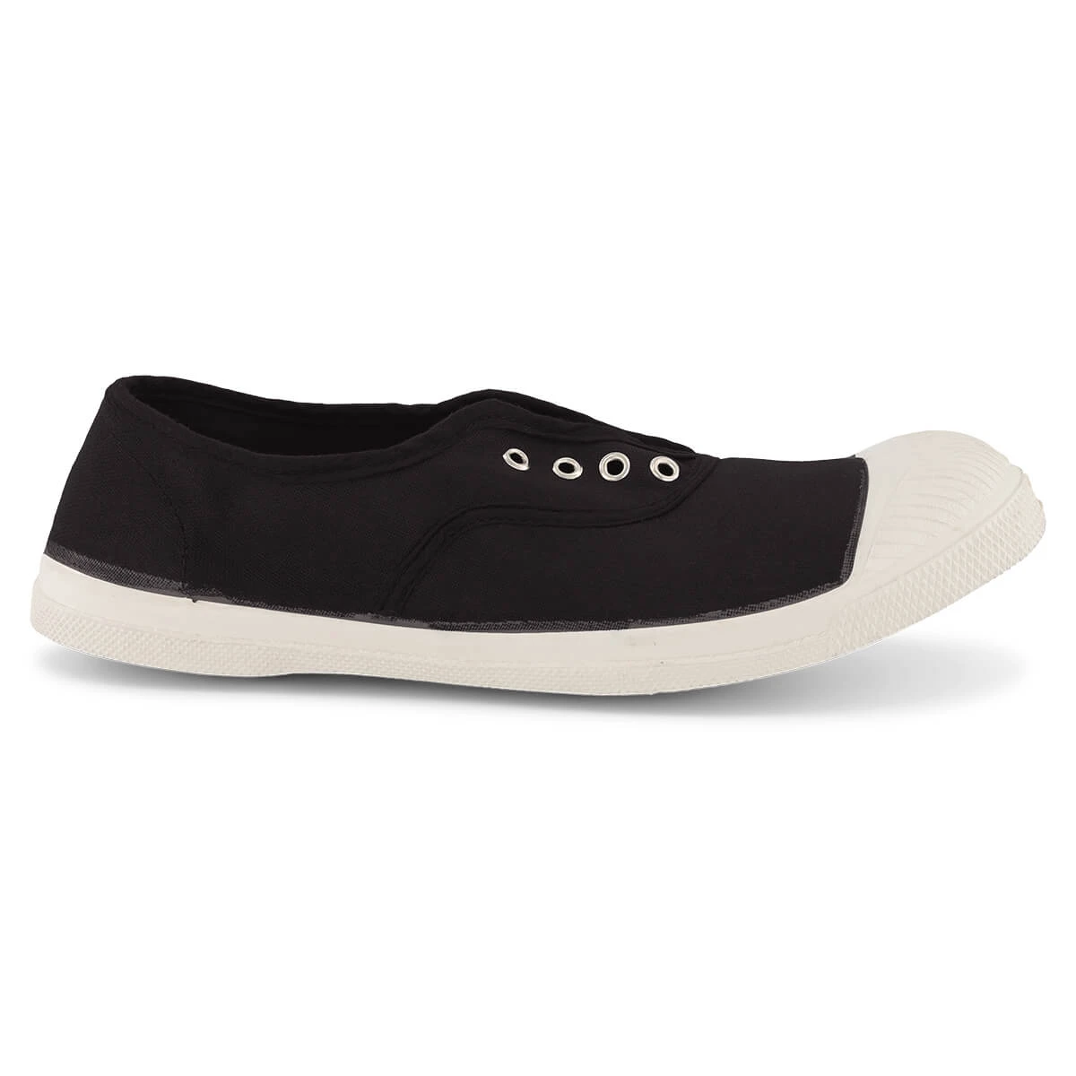 Women’s Elly slip on tennis shoe by Bensimon.  The original Bensimon laceless tennis shoe with eyelets and elasticated front. This slip-on style is easy to put on and quick to take off. Thin and lightweight made from rubber and natural cotton. Every shoe is hand-dyed in Bensimon’s workshops in France, meaning every pair has its own variations and is completely unique.