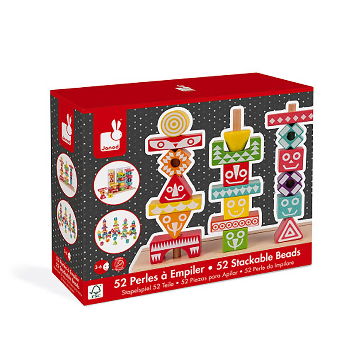 Wooden edutotem stackable pieces by Janod. With its 12 totem designs and 52 solid wood pieces, this educational toy is ideal to stimulate your child’s observation skills and develop their dexterity. Simply position the cards on the wooden base and reconstruct the totem indicated on the design, by stacking the pieces in the right direction and in the right order. Edutotem will help your child learn shapes and colours while having fun!