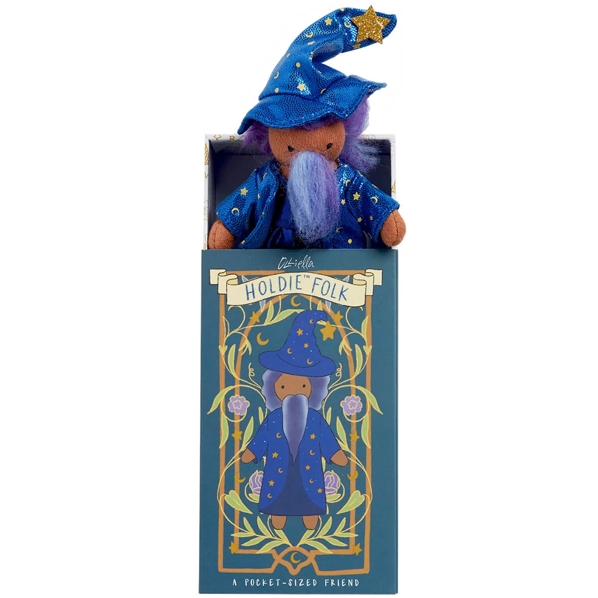 Wulfric The Wizard Holdie Folk pocket-sized doll by Olli Ella. Wulfric is Holdieâ„¢ World’s warlock extraordinaire. There’s no spell he can’t conjure and no ailment he can’t heal with his magical wizardry. Like all Holdieâ„¢ Folk, Wulfric is fully poseable; he wears removable wizarding robes complete with a pointed magic hat and has a long, majestic purple toned beard. Made by hand, Wulfric is the perfect size pal to pop in a pocket or the palm of a hand. Just add a sprinkle of Imagination to bring your Holdieâ„¢ friend to life!